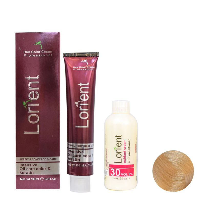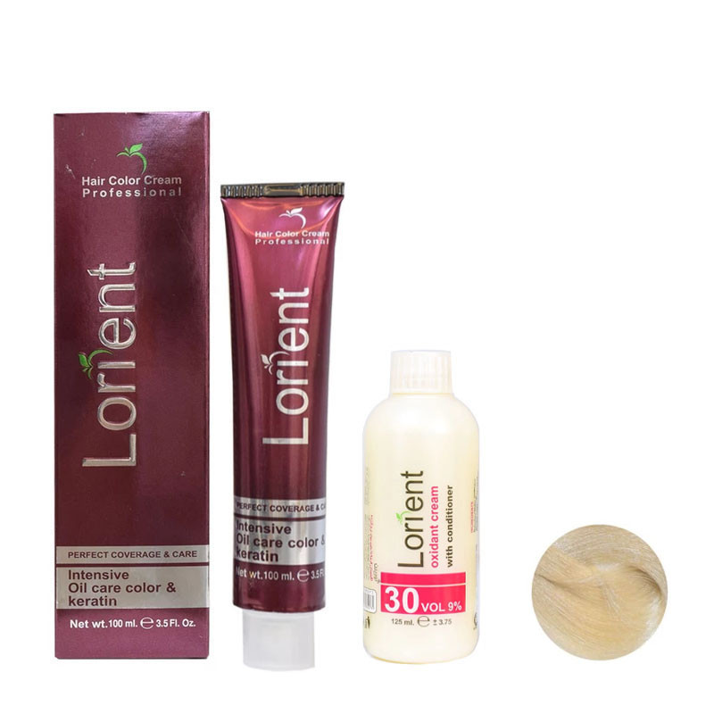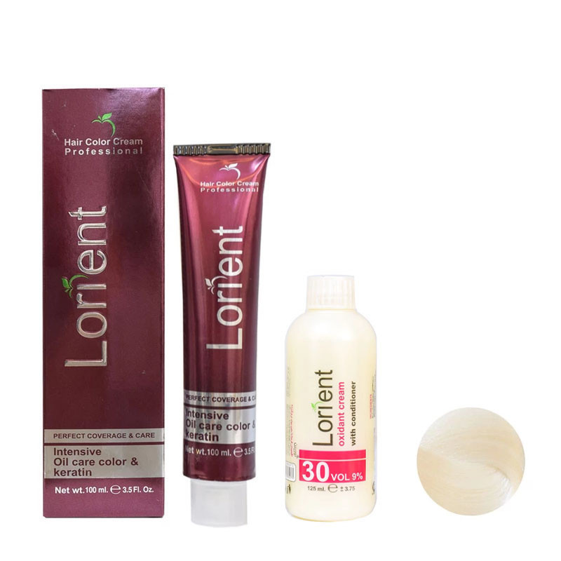رنگ مو لورینت شماره N10 حجم 100 میلی لیتر رنگ بلوند پلاتینه خیلی روشن به همراه اکسیدان شماره 2 نه درصدی حجم 125 میلی لیتر