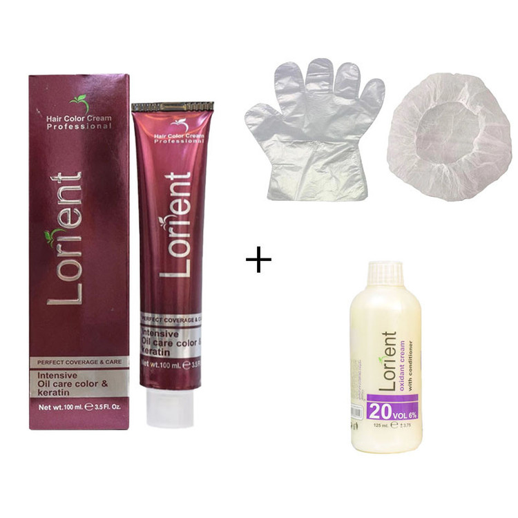 رنگ مو لورینت شماره N3 حجم 100 میلی لیتر رنگ قهوه ای متوسط به همراه اکسیدان مدل 1 شش درصدی حجم 125 میلی لیتر