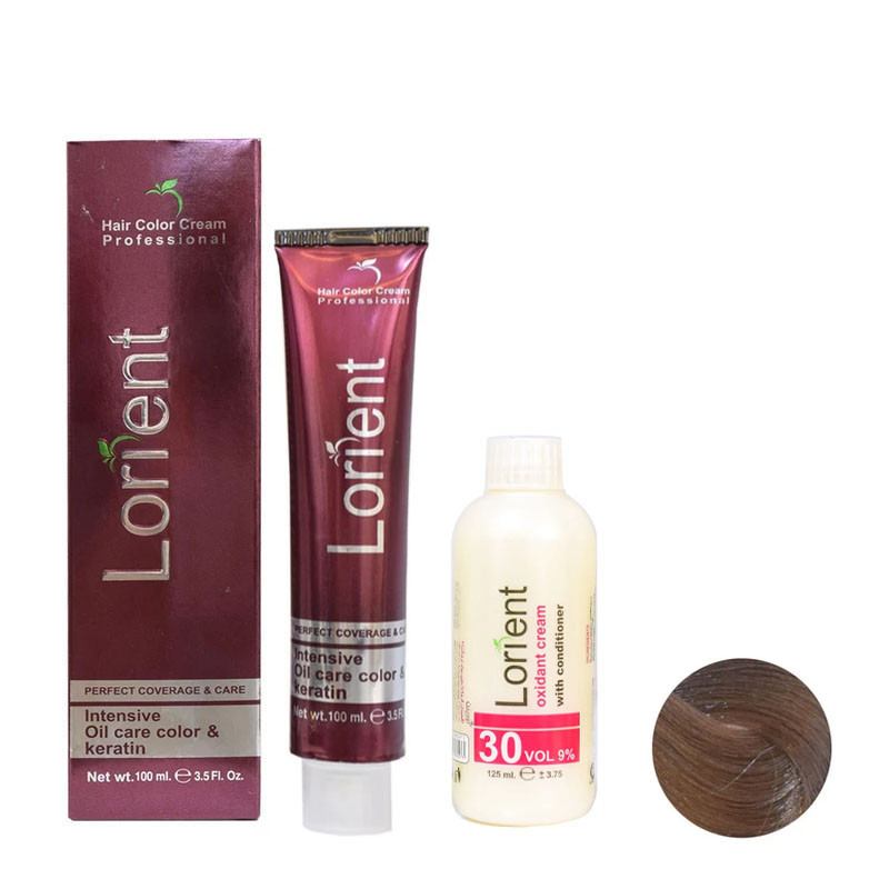 رنگ مو لورینت شماره C6 حجم 100 میلی لیتر رنگ بلوند دودی متوسط به همراه اکسیدان مدل 2 نه درصدی حجم 125 میلی لیتر