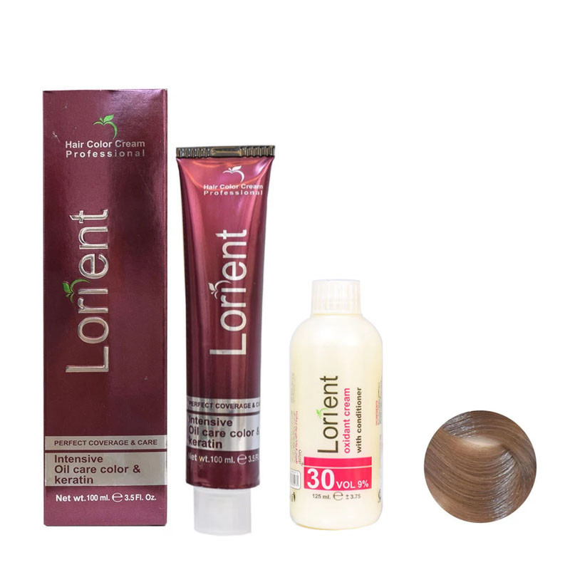 رنگ مو لورینت شماره C8 حجم 100 میلی لیتر رنگ بلوند دودی خیلی روشن به همراه اکسیدان مدل 2 نه درصدی حجم 125 میلی لیتر