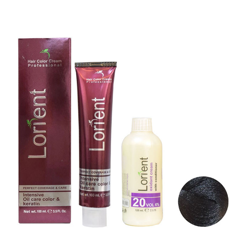 رنگ مو لورینت شماره N1 حجم 100 میلی لیتر رنگ مشکی به همراه اکسیدان مدل 1 شش درصدی حجم 125 میلی لیتر